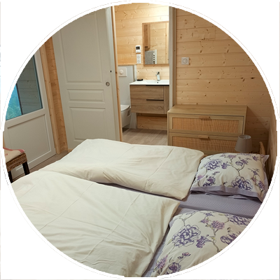 Chaque salle de Bain est dotée d’une douche, d’un radiateur mural-sèche serviettes, d’un sèche cheveux et chaque hôte dispose pendant son séjour d’un drap de bain et de savon-shampoing.
